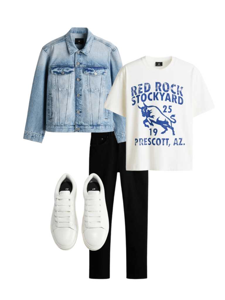 Personally, I prefer lighter-wash denim jackets because they add contrast and keep the outfit looking fresh. One of my favorite combinations is a light denim jacket with black skinny jeans, a white T-shirt, and white sneakers. It’s simple, modern, and works.